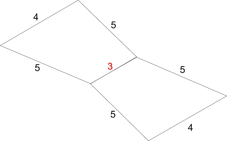 I have lot of polygons with the same situation: In the example graph I unwittingly traced 2.75 instead 3 remain, how do I set this as 3 and others that remain joined at their vertices can varying their angles to get the extent required and achieve 5,3,5, something like moving body extremities, where you can change the shape slightly from the lines or move in different angles that share vertices, not the dimensions. how to do it ?