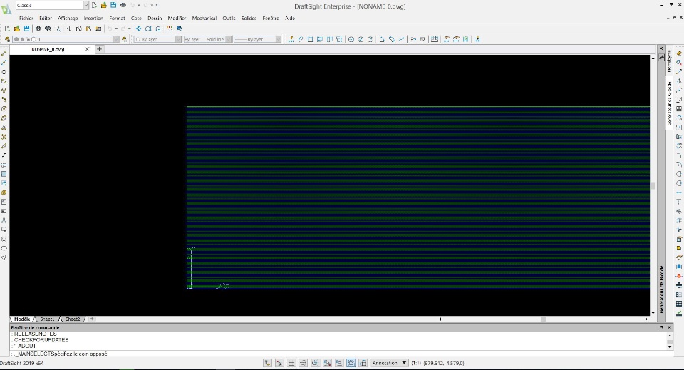 Hello, 3 weeks ago my screen was changing as shown in the file attached. I de-installed and re-installed Drafsight (2019-SP3) without removing the trouble. Even using CCleaner between installation trial, It is always bad. I do not have this trouble under Soliworks (graphics window).