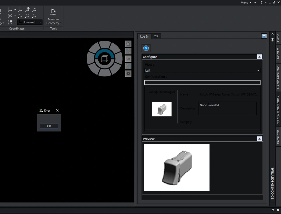 I continue to get a nondescript "Error" dialog when attempting to insert a parts view via 3D Content Central.
