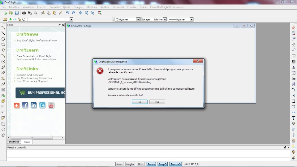 I had downloaded several times the installer and repeated the installing procedure but when I try to lounch the application, after opening there comes the following warning: "Il programma verrà chiuso. Prima della chiusura del programma, provare a salvare le modifiche in:". After a cruchreport in autamaticly generated.