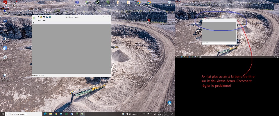 When I am using 2 screens, my Draftsight window on the second screen loses the Title bar. This does not happen with any other software I am using. After I moved my DS window to the second screen, I can not move it anymore as I do not have access to clic on the title bar to CLIC/Move it. I have to right clic on the title bar and choose move to be able to move it. How can I resolve my problem? See attached printscreen to see what happens.