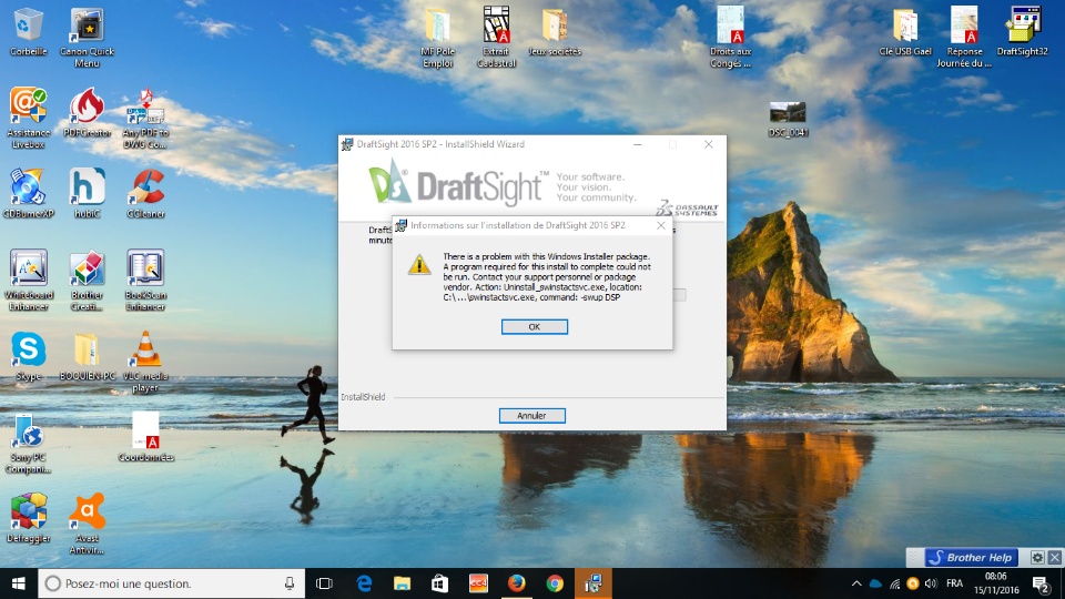 Jeudi dernier 10 Novembre 2016, j'ai souhaité faire la mise à jour vers Draftsight 2016 SP2 mais depuis la version SP1 s'est en partie désinst