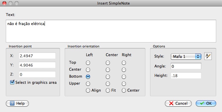 a very odd problem is happening with texts on draftsight mac. as you can see on the capture below left the phrase "não é fração elétrica" shows all characters in the text box. as soon as I place the text on the drawing the international characters are gone, as can be seen below right.