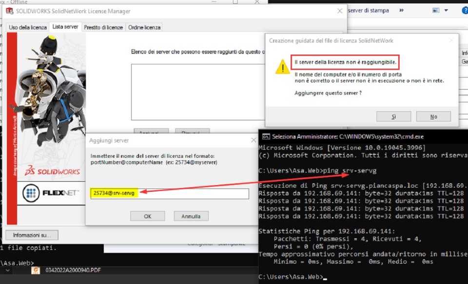 We have installed the SNL on a server and now we need to install Draftsight on the clients. I put the information like it's explained in the documentation (so 25734@servername, std port) but when we try to run the application it gives us this error: