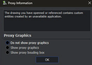 When re-opening a DWG file entirely made in Draftsight after saving it, I now get a Proxy Information popup about entities created by an unavailable application. It seems this was caused by adding a leader to the drawing using the Annotate menu.