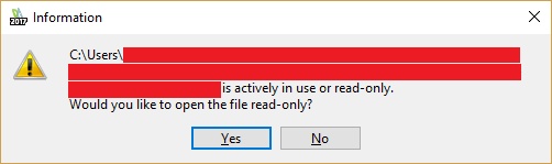 Then yesterday, I left my computer for about an hour with several applications open like Chrome, Excel etc. and as well DraftSight. When I returned, Windows had made a restart (automatic update I suppose) and when opening DraftSight again, I could only open all my CAD files as read only, see attached dialogue box. It should be noted that all my CAD files are stored on my cloud drives at Dropbox and OneDrive but DraftSight now seems to refuse to open all files from any subfolder in my user root folder (C:\\Users\\). DraftSight does however allow me to open and save files in the user root folder. This is VERY annoying!