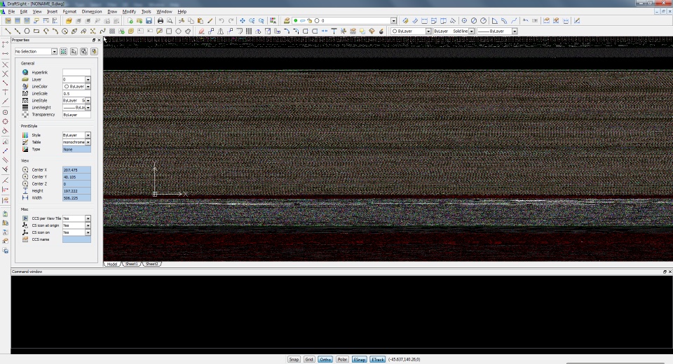 When I open DraftSight the model space is filled with static of ranging colors but mainly blue and green. I also can't select lines or boxes in the paper space or model space. The mouse gets all glitchy. When I zoom in, in the model space, the viewport gets glitchy as well ghosting lines. Also, the Command Window is showing all of the text as black. I have to highlight the text in order to see it.