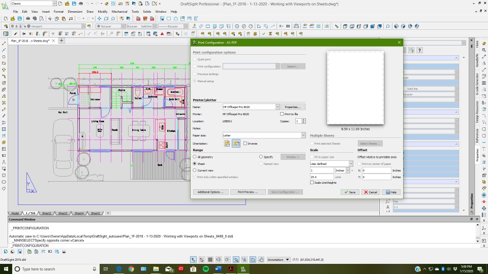 Hello! I am unable to activate the "Letter" size in printing. The thumbnail is blank, the drawing is way out of sight. I don't know where it is. I've moved the drawing all over the Sheet space to try to capture it. But it's not there. I've clicked multiple configurations according to Printing directions for DraftSight 2018.