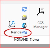 Drafting & Annotation View: VIEW tab, Render sub-menu panel: The panel icon set continues vertically downward and "behind" the drawing windows area. Annotated screenshot attached.