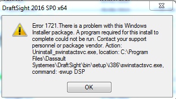 I was unable to load the license in my work computer while it worked fine in my personal computer. I tried to reinstall Draftsight 2016 to see if the problem would still exist. Unfortunately, after the installation, the software showed ERROR when I tried to open it. I am not able to uninstall nor change to other versions anymore because of this error.