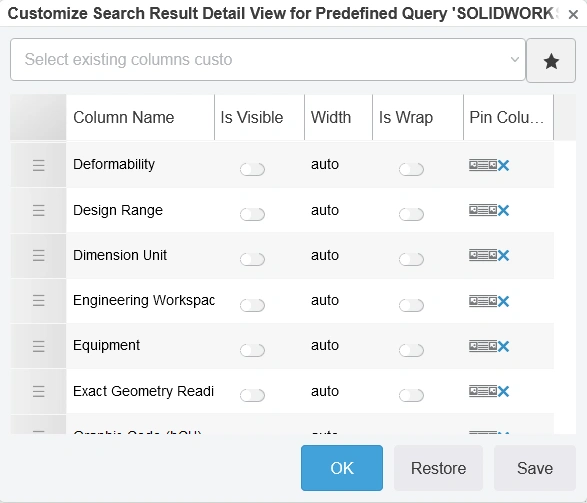 On Public Cloud we have the command "Manage grid view customization" to edit the column show in the search results. However, among the standard fields shown by the system the attribute Enterprise Item Number is not present.