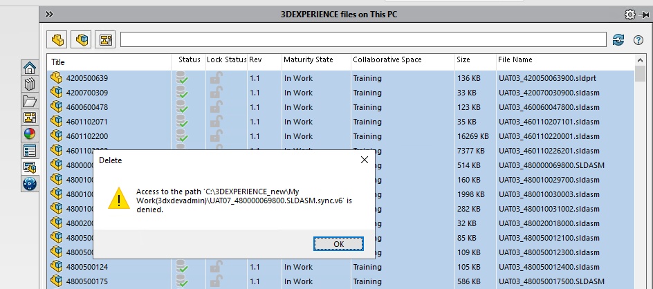 Any idea how the following issue can be solved. Trying to clean-up the 3DX Working Folder using the new introduced FD02 functionality (Local File Manager).