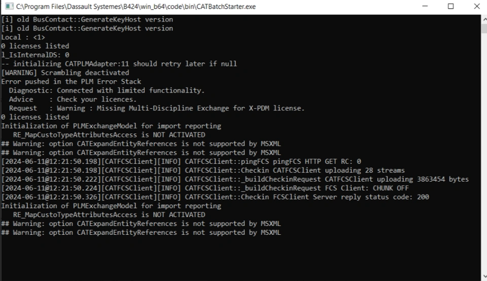 I am encountering the following errors while attempting to import 3DXML data from the native client (2022x, HotFix 5).