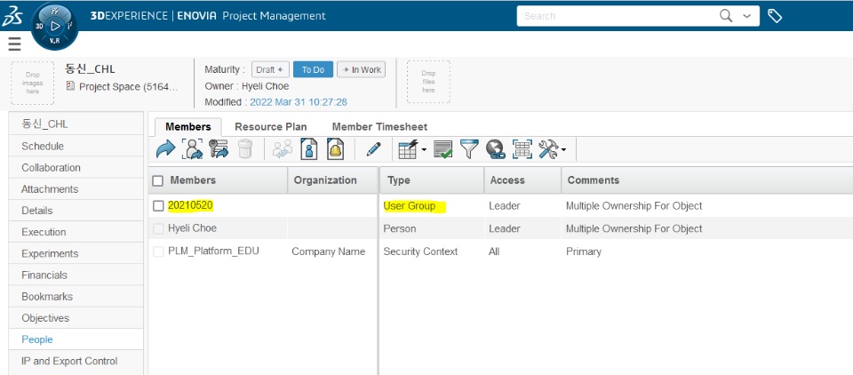 I added a Group to People via "Share with User Groups" in the project.