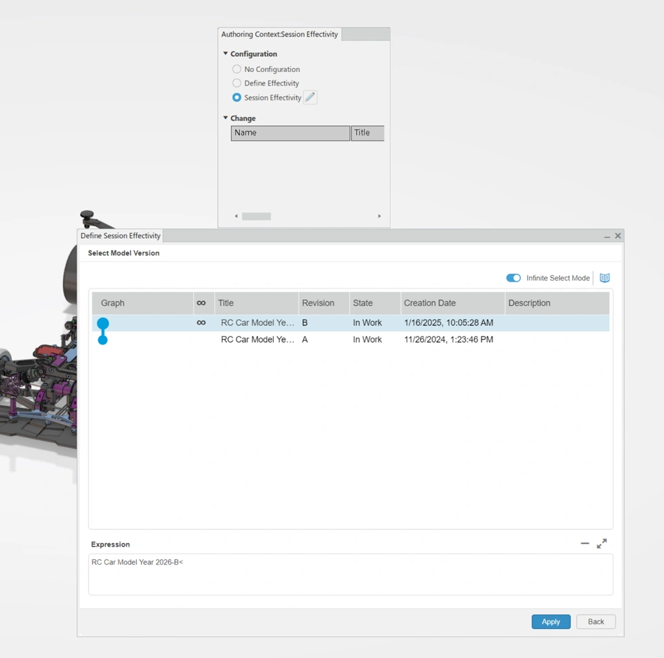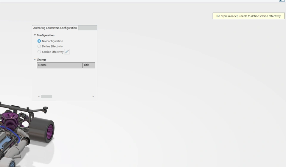 I now receive an error message, and the effectivity selection reverts back to No Configuration.
