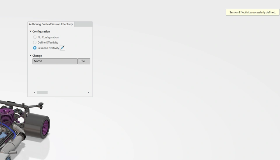 Notice that there is a popup that says "Session Effectivity successfully defined".