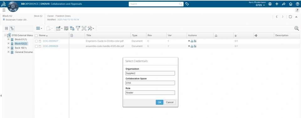 We equipped the Suppliers with respective roles, i.e. Supplier1: VPLMViewer.Supplier1.0705, Supplier2: VPLMViewer.Supplier2.0705.