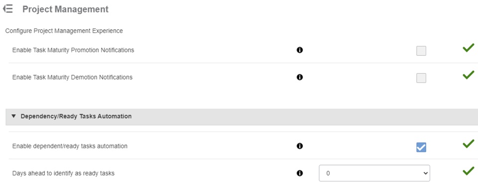 In Collaborative Space Control Center, check "Enable dependent/ready tasks automation" and test dependent tasks
