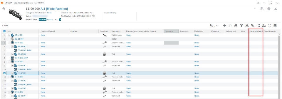 In XEN I can only add attribute Declared Weight. But it is manual process, all materials was add from 3DXPERIENCE so I want to computed all compoments and see this weight in BOM.