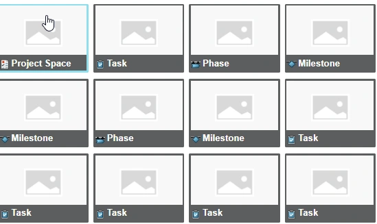 The Thumbnail DisplayMode provides a view of Thumbnails, however (in my standard view) define the Type of the Planned Item, and not the Name.
