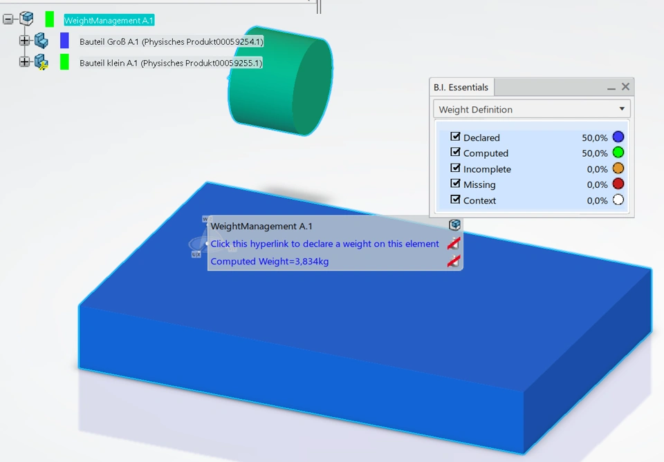 In 3DX-CATIA, the weights were declared via BI Essentials.