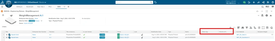 In the Engineering Release (XEN) there are 2 attributes "Mass" and "Volume", which I would like to fill with values from 3DX CATIA.