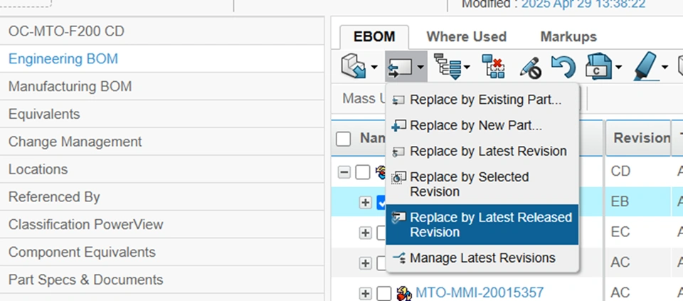 When doing so, we get this error that says that In Work Revision EB is already latest revision and can not be updated.