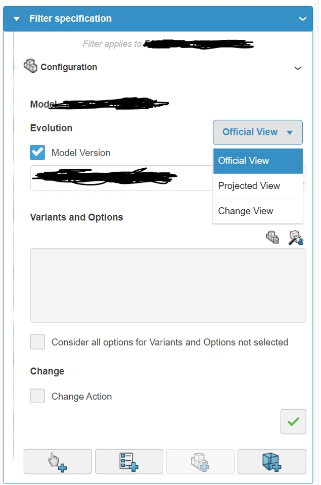 | Change Order State | Model Version/Manufacturing Plan Filter View |
