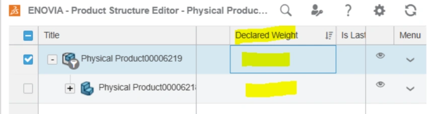 What is the process for changing the 'Declared weight' in the web UI (Enovia 2022x)
