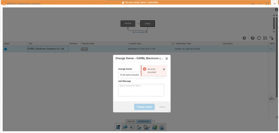 We have tried to use the Collaborative Lifecycle widget, but we have reported an error.
