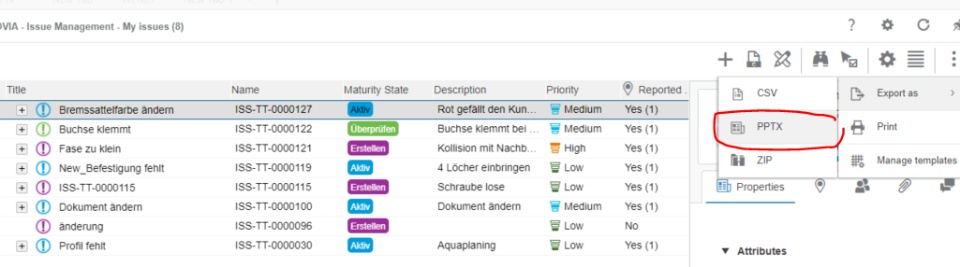 Inside the APP Issue Management, it is possible to export the content into a pptx. This functionality is great, but unfortunately I found no hint, there I can place my own template and how it´s to define. Maybe you can help.