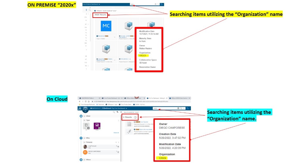 We are really common to search items below On Premise only typing the "Organization" name and we can easily obtain several results we go to filter with 6W Tags.