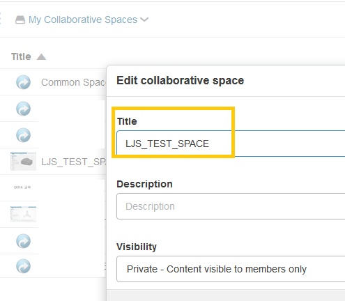 Don't see the name of the changed Collaborative Space??