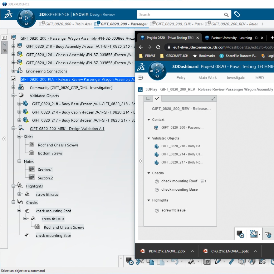 In local client created "Reviews" (Design Review) can be displayed in 3DPlay on web client. But this seems to be only possible for "Reviews" based on context type "Product" > opening context types "Simulation" (like a clash analysis) do lead to an error message.