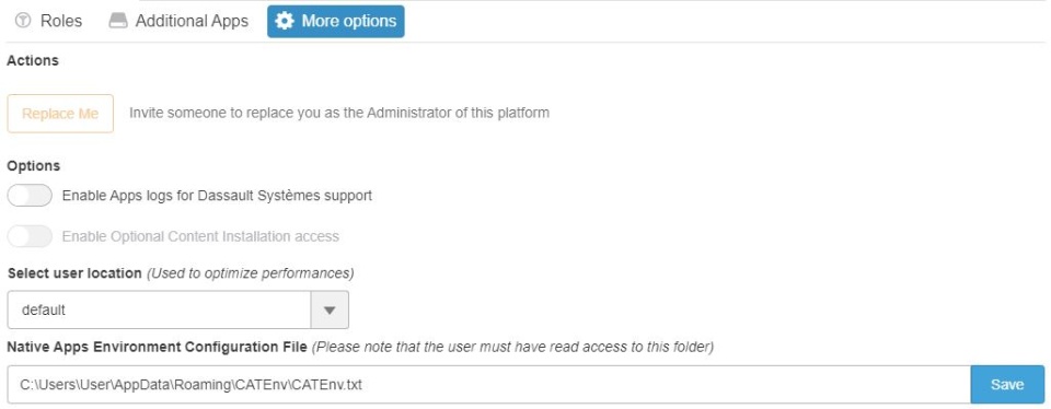 We have found the Native Apps Environment Configuration File and set the location of the CATEnv, but from the Compass the V5 have started with the default Environment.