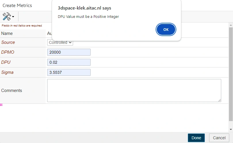 Hi, everyone. I would just like to ask for some help because when I was trying to create another metrics, the DPU needs to be a Positive Integer. But searching for its formula, it's actually "defects/total population". And if that's the case, it will always be less than 1 because defects will normally be less than the total population, right? When I created the quality object, the DPU on its metric was less than 1 and there was no problem. I only received this notification when creating the second CTQ. Would anyone be so kind to shed light on this? Many thanks.