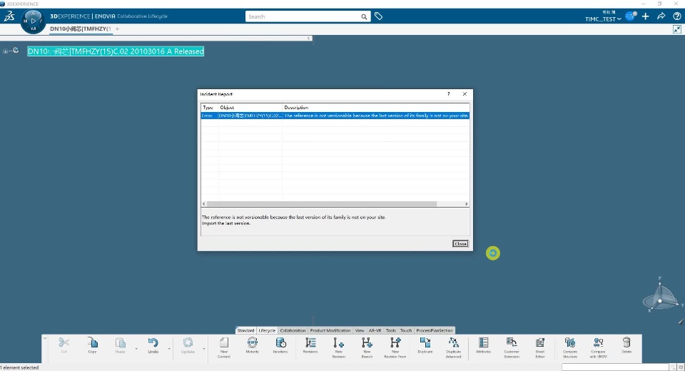 When I open a physical product and click on the new revised version, the system prompts that the revision has failed and displays the message "The reference is not versionable because the last version of its family is not on your site. Import the last version."