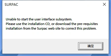 Unable to start the user interface subsystem.Please use the installation CD, or download the pre-requisitesinstallation from the Surpac web site to correct this problem.