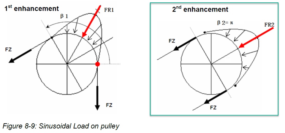 On our rope pulleys we have to apply the forces with a sinusoidal distribution around the outer surface. This surface is of circular curved shape and not a plan one. Hence, the usage of "bearing load" doesn't work.