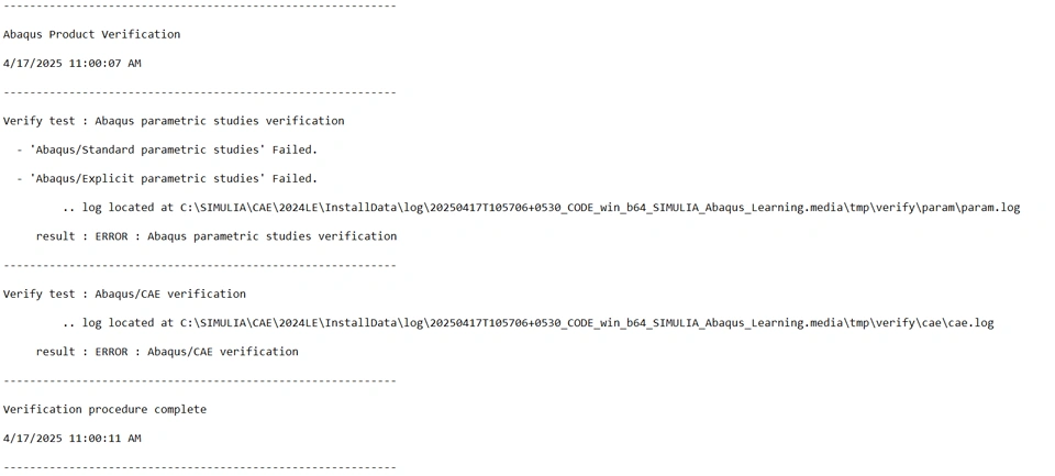 I was installing Abaqus 2024.After installation It indicates parametric study verification error as indicate in log file that I have shown in figure 1. Figure 2 indicates the log file which locate in location that indicate in figure 1. Please can anyone help.