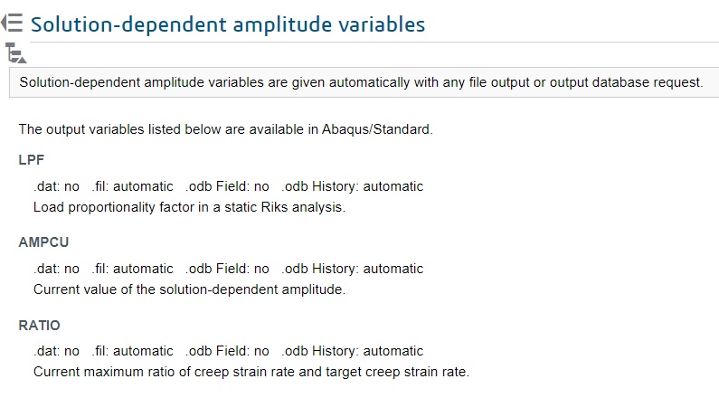 According to the documentation it is possible to access the current solution dependent amplitude (AMPCU) through the history output, see image. However, it does not appear when I check the history outputs, even though it says it is 'automatic'.