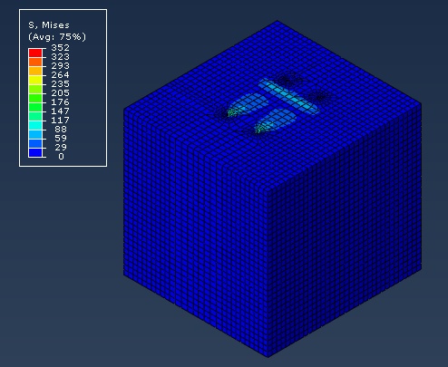 I am simulating a sub-assemblage model of concrete with baseplate -bolt connection and with a column (I -section) at the top. The grade of concrete is M45. Lateral loading is applied on the column to study the failure pattern of bolts and base plates. But after the loading, the stress in concrete 352 MPa, particularly at the bolt holes. This much higher stress is possible ? What is indicates?. Attaching the material model and stress pattern for reference