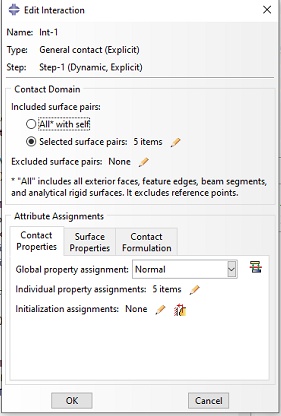 I have a doubt about the option "all with self" in the contact domain in general contact. I have read the abaqus information but is not enough clear for me. Is necessary to specify the contact domain selecting surface pairs knowing that in the attribute assignments the surface pairs have to be specified again? Or if I put in the contact domain "al with self" and in the attribute assignments put the surface pairs is the same?