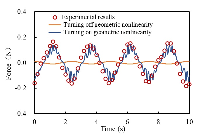 I used the Aqua module in Abaqus for wave load calculation. Using the same model, in the analysis step, I turned on geometric nonlinearity, and the output results were close to the experimental results. However, the curve was very shaking, which should be relatively smooth and close to sine. Turning off geometric nonlinearity, the curve was relatively smooth, but there was a significant difference between the results and the experimental values. How to handle this situation? Thank you!