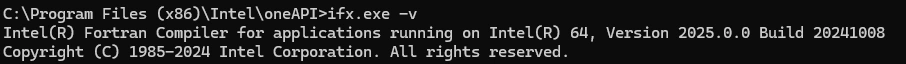 I checked the whole intel folder and I couldn't find any files named ifortvars.bat. I was able to locate the ifx.exe file (Chatgpt told me to) and verified that the Fortran compiler is indeed installed on the system.