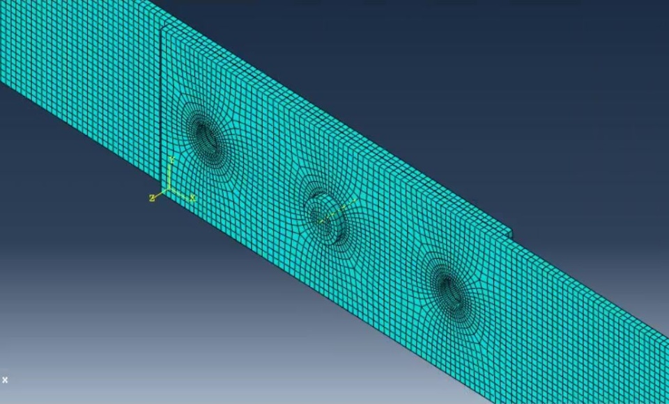 My model is a simple lap joint. Only one bolt is used in this model at this moment. One end of the joint is fixed, and the other end has a displacement B.C. of 0.01 inch.