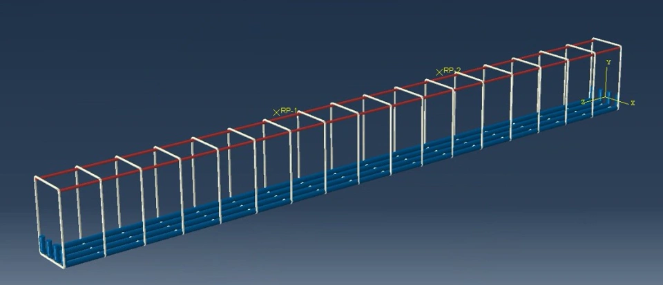 Model Description: I am building a reinforced high-strength concrete beam under 4-point bending test. The steel reinforcement includes ties, tensile bars with anchorage and minimum reinforcement bars at the compression zone of the beam. I have defined CDP damage parameter with relationship I have obtained by inserting concrete properties into an excel. I followed standard settings for interaction of the parts I have seen on YouTube. I used "embedded region" for constraining the steel bars and concrete beam. For the loading point and simple support simulation, I define them with steel material properties, used "general contact" as their contacts with the beam. I have then partition the support into half and applied boundary condition to the partition lines. For the loading, I have used "rigid body" constraints to tie the reference point to the loading plate and then applied point loads to the reference point.