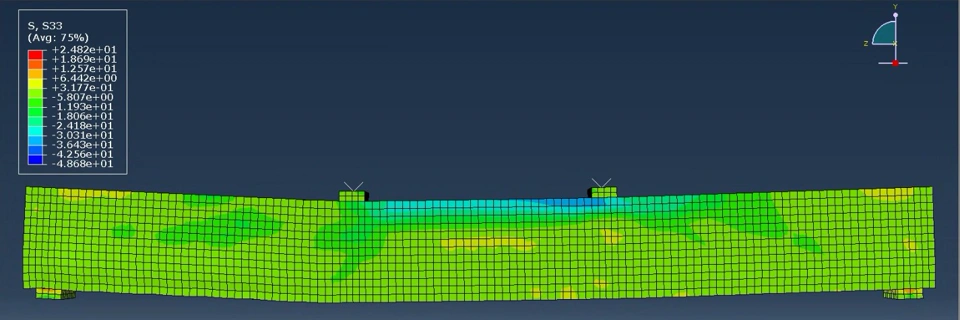 2 The bending stress distribution within the bending is not realistic. The results at the end of the analysis showed concentrated stress distribution around the loading point, where as the bottom of the beam where should experience the highest tensile stress only showed average stress values.