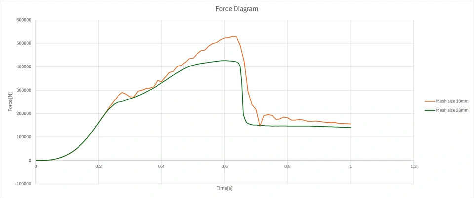 The above force curves remain fairly constant for different time increments as mass scaling parameters. Since another user had a similar problem, I have already tried replacing the general contact with a surface-to-surface-contact in order to use the kinematic contact algorithm instead of the penalty contact algorithm. Unfortunately, this did non change anything.