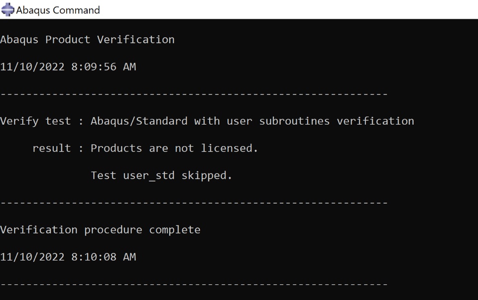 The only thing that come to my mind was checking the Abaqus Verification in command prompt. This time I didn't see the message " .... PASS " as before. Now the message is " Products are not Licensed", as bellow:
